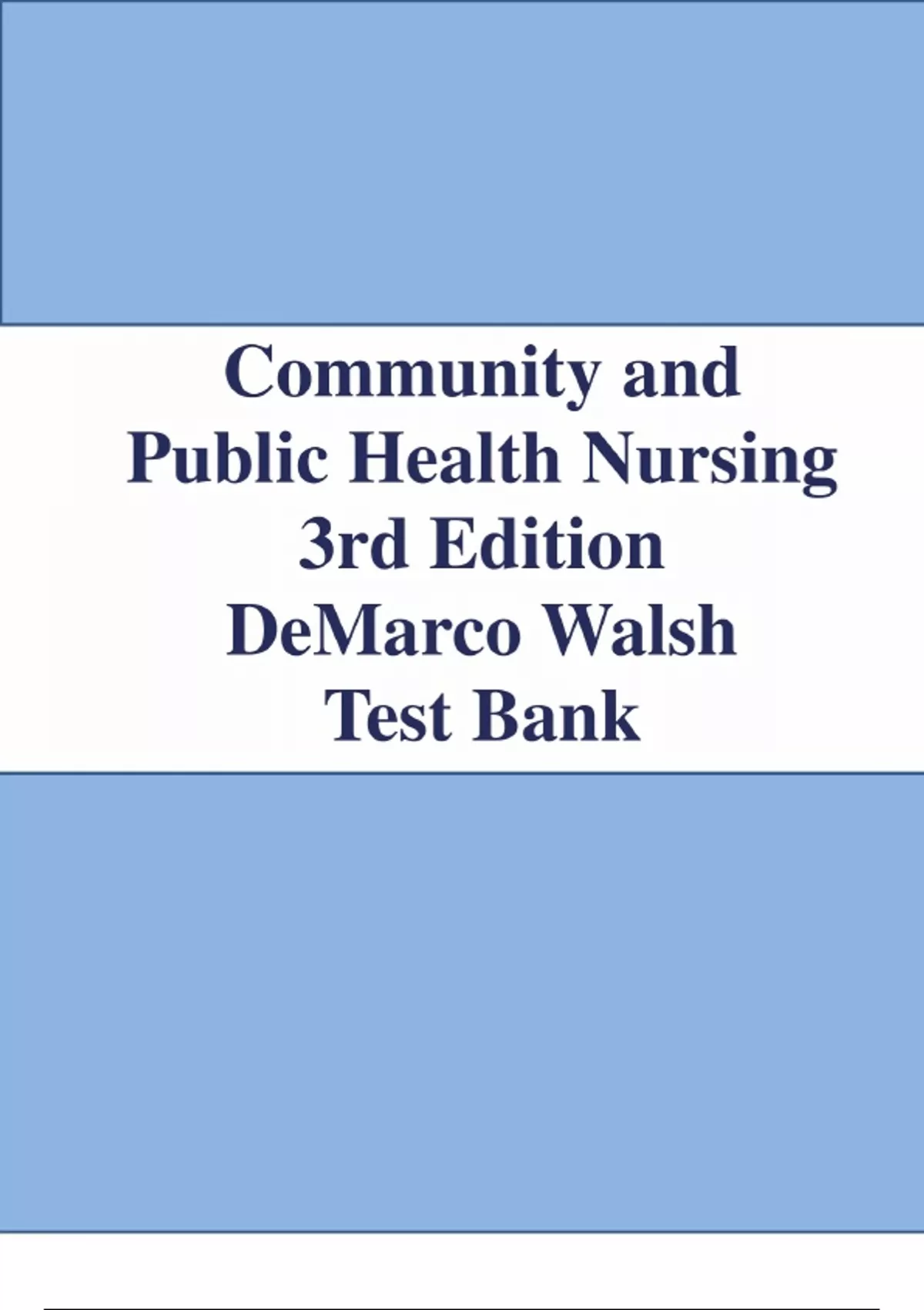 COMMUNITY AND PUBLIC HEALTH NURSING 3RD EDITION DEMARCO WALSH TEST BANK. ALL COMPLETE CHAPTERS. DETAILED VERIFIED QUESTIONS AND VERIFIED ANSWERS. GUARANTEED A+ SCORE.