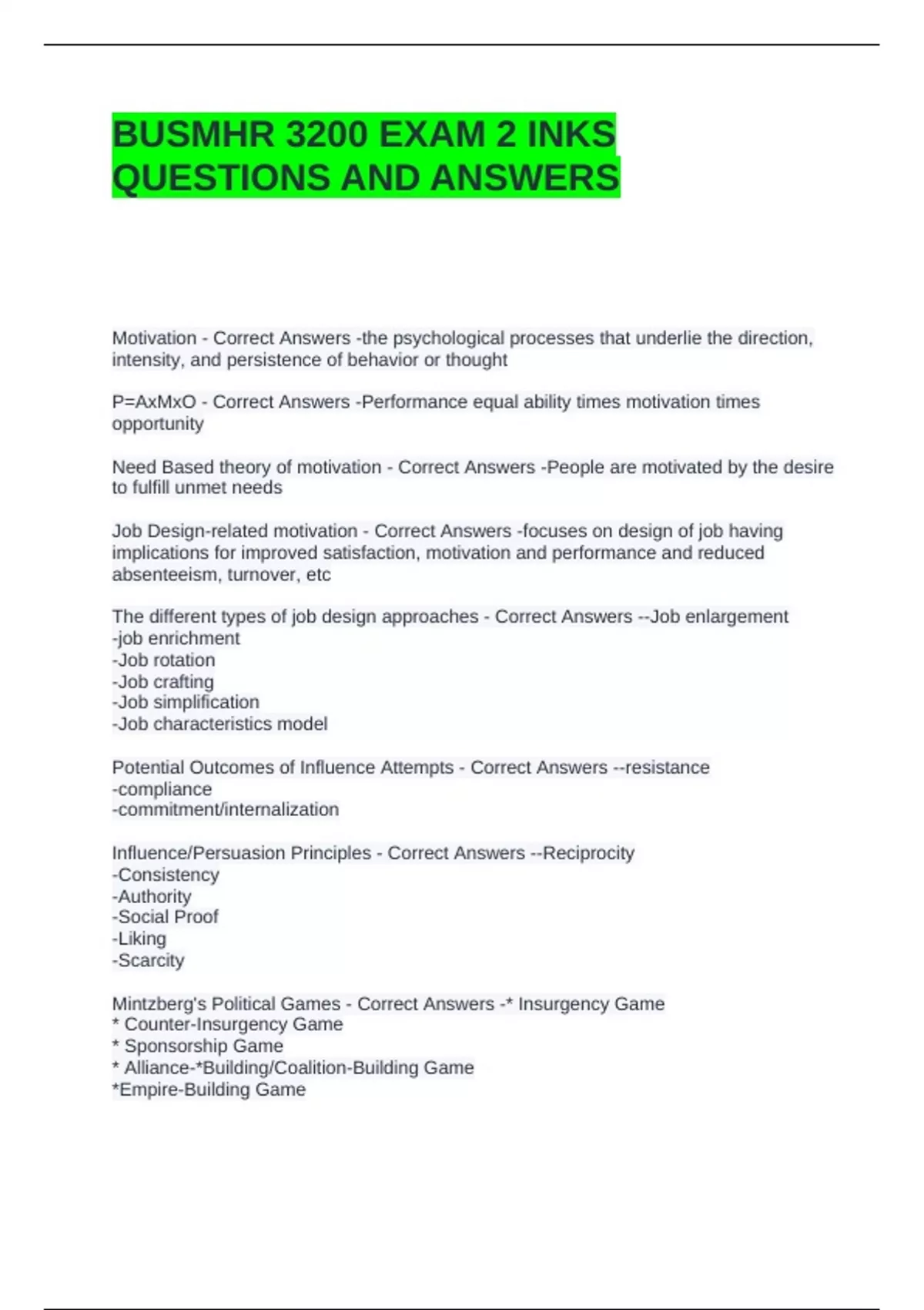 Job Design-related motivation - Correct Answers -focuses on design of job having