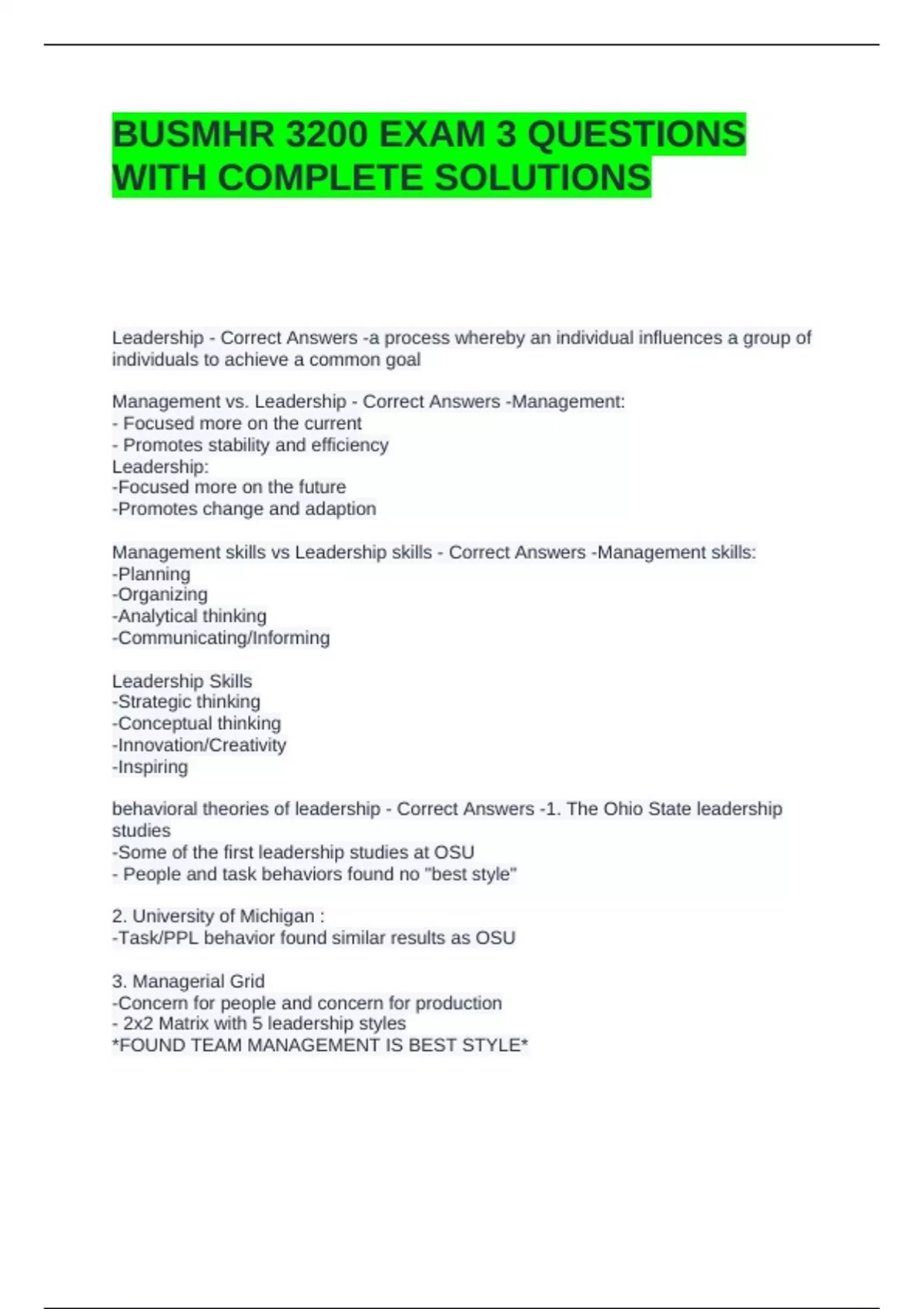 BUSMHR 3200 EXAM 3 QUESTIONS