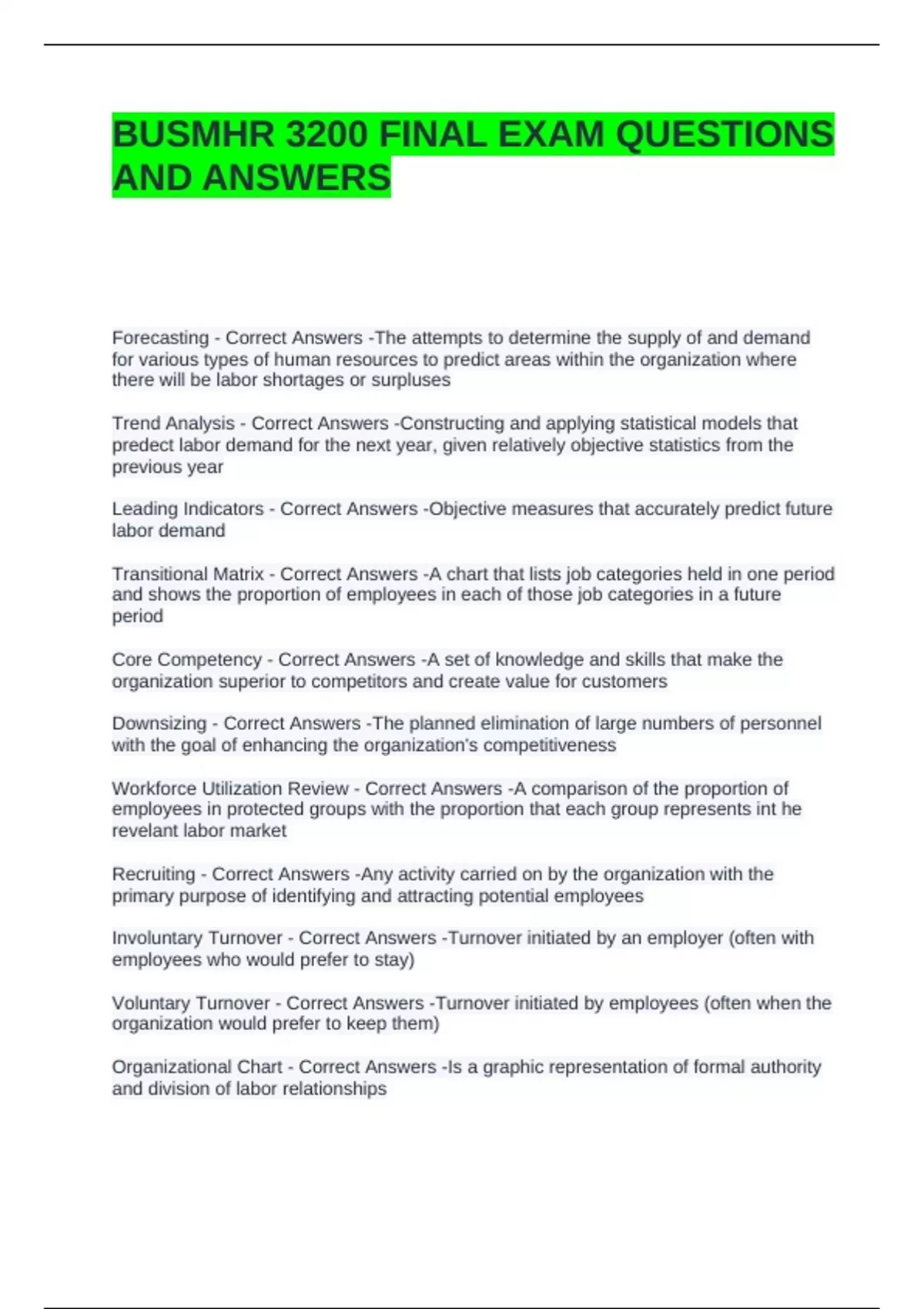 BUSMHR 3200 FINAL EXAM QUESTIONS AND ANSWERS