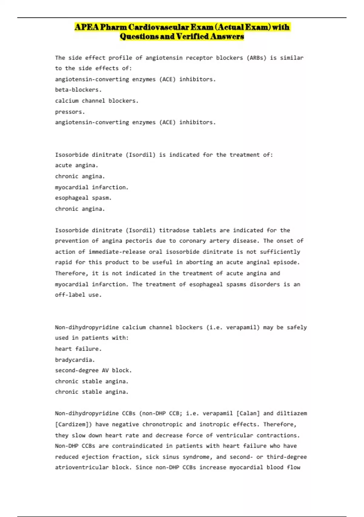 APEA Pharm Cardiovascular Exam (Actual Exam) with Questions and Verified Answers
