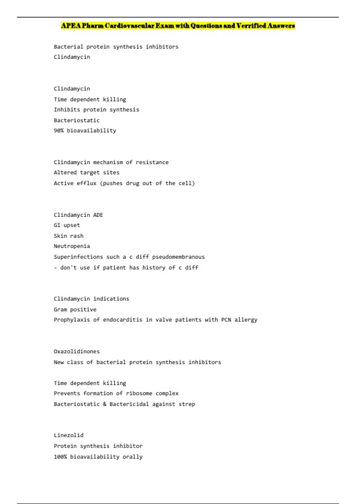 , APEA Pharm Cardiovascular Exam with Questions and Verrified Answers