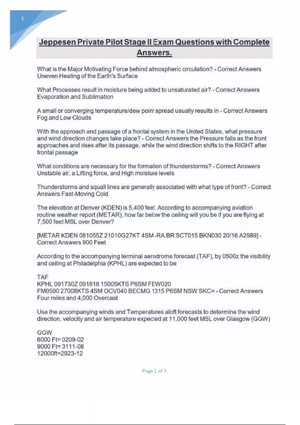 Jeppesen Private Pilot Stage II Exam Questions with Complete Answers.Jeppesen Private Pilot Stage II Exam Questions with Complete Answers.Jeppesen Private Pilot Stage II Exam Questions with Complete Answers.