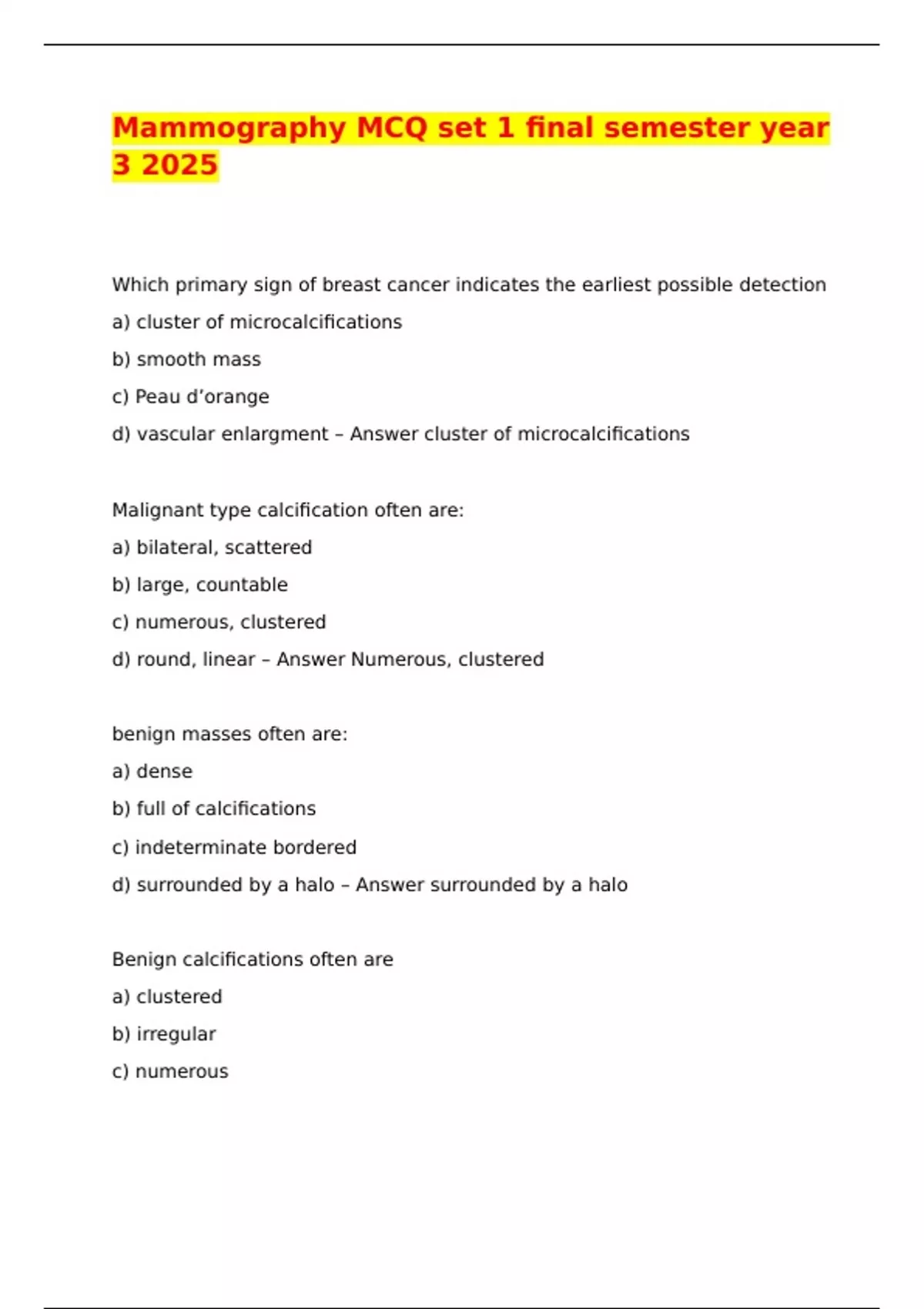 Mammography MCQ set 1 final semester year 3 2025,