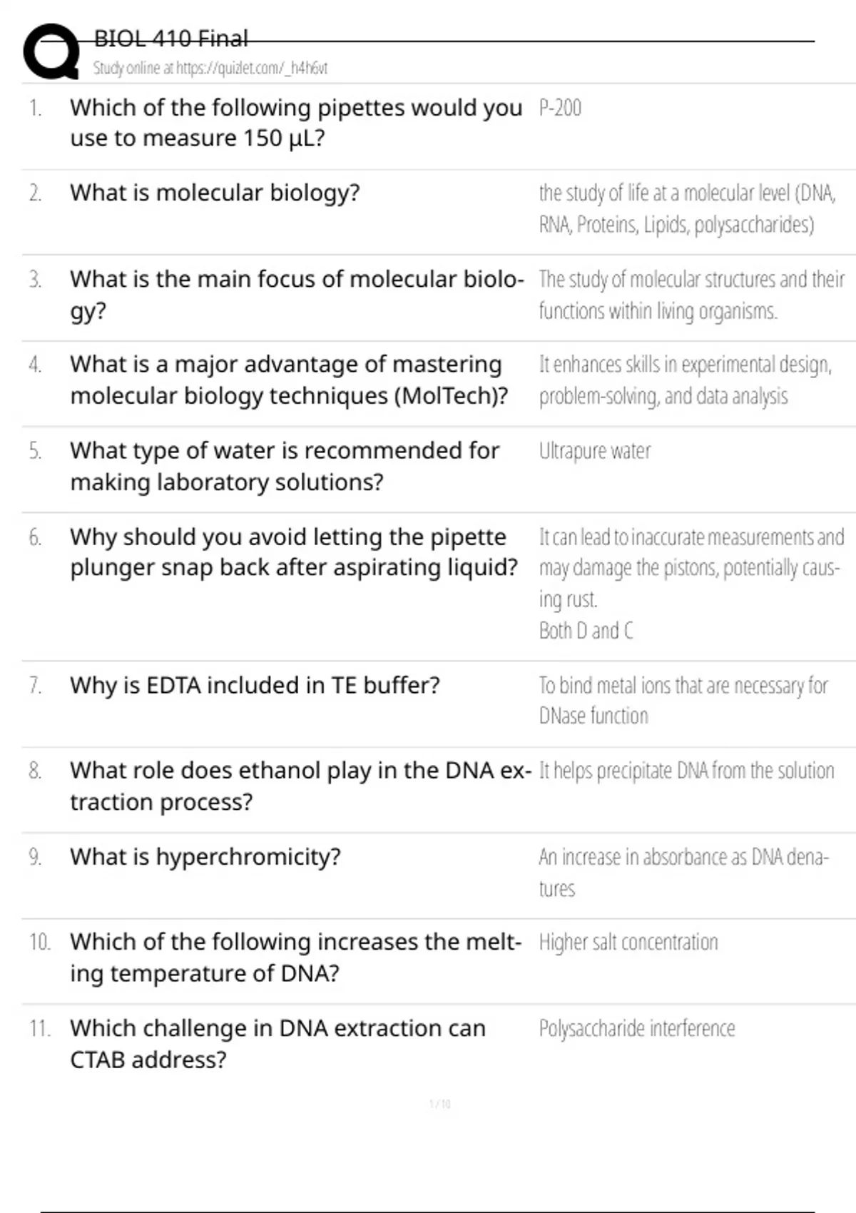 Exam of 10 pages for the course 3x@m at 3x@m (BIOL 410 Final)
