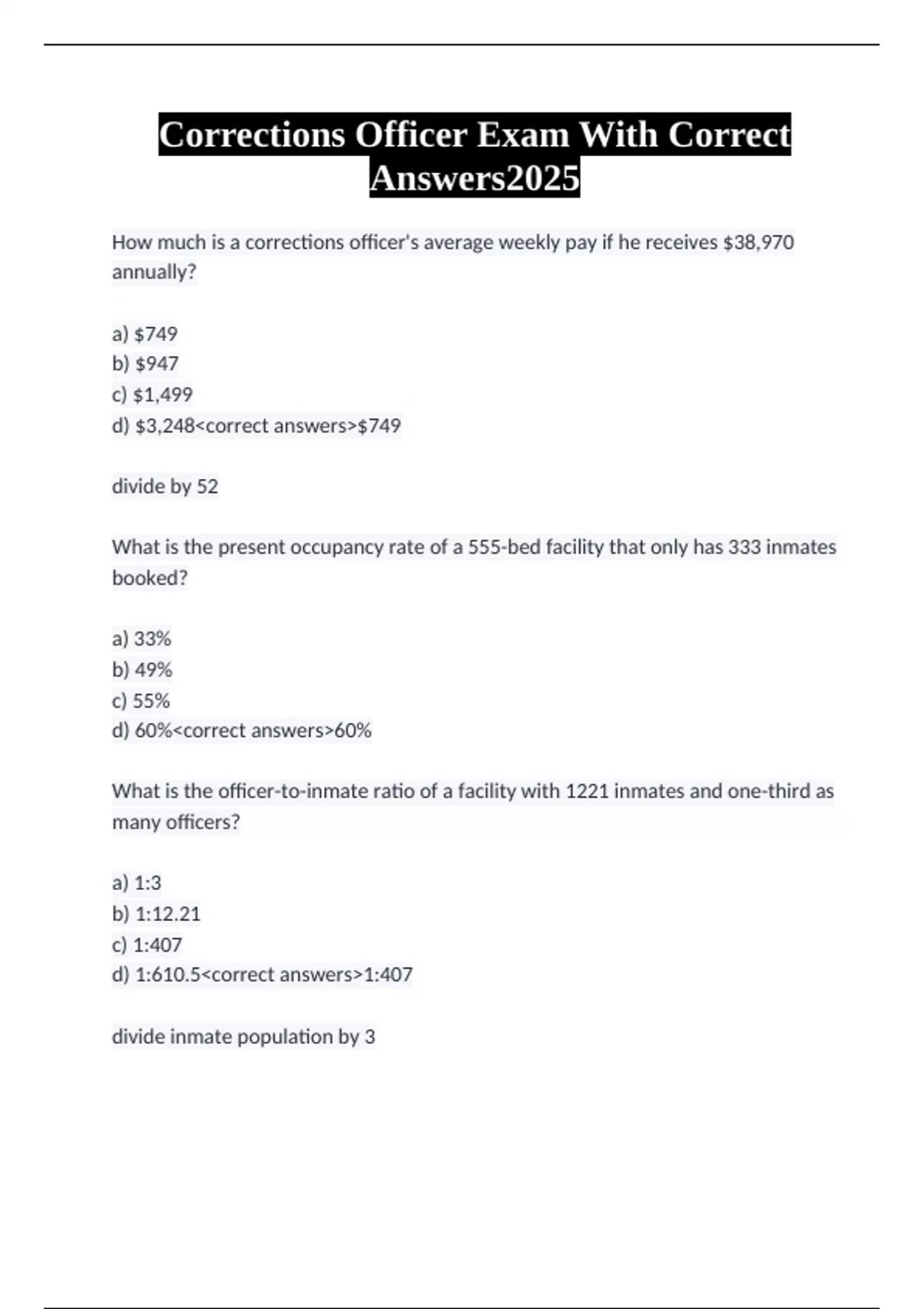 Corrections Officer Exam With Correct