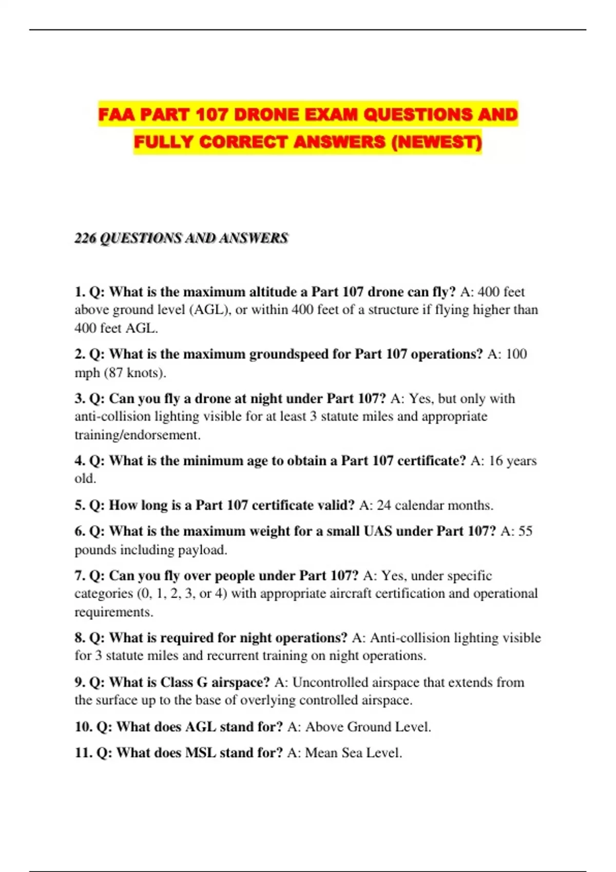1. Q: What is the maximum altitude a Part 107 drone can fly? A: 400 feet