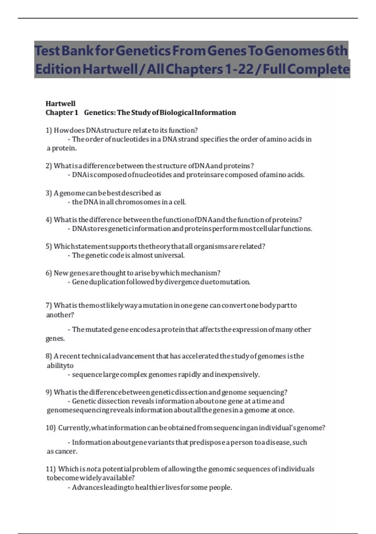 Test Bank for Genetics From Genes To Genomes 6th