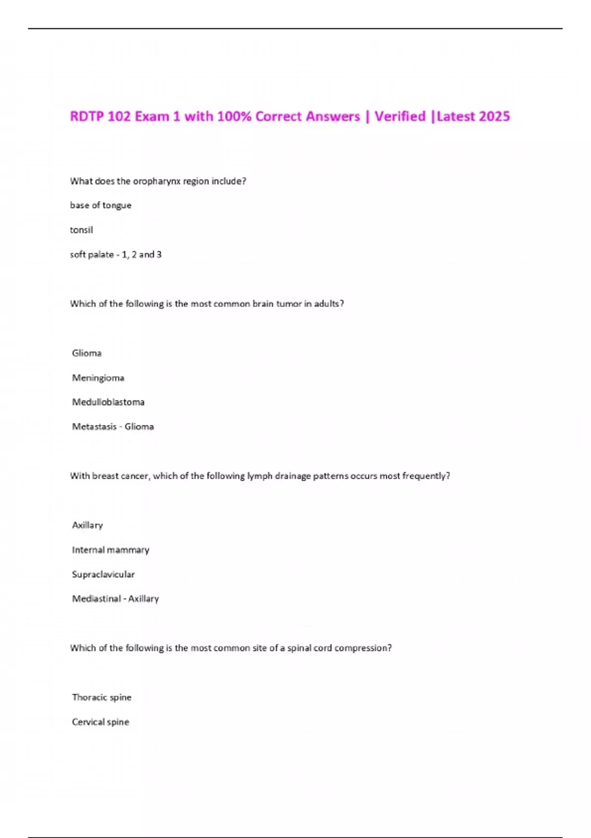 RDTP 102 Exam 1 with 100% Correct Answers | Verified |Latest 2025