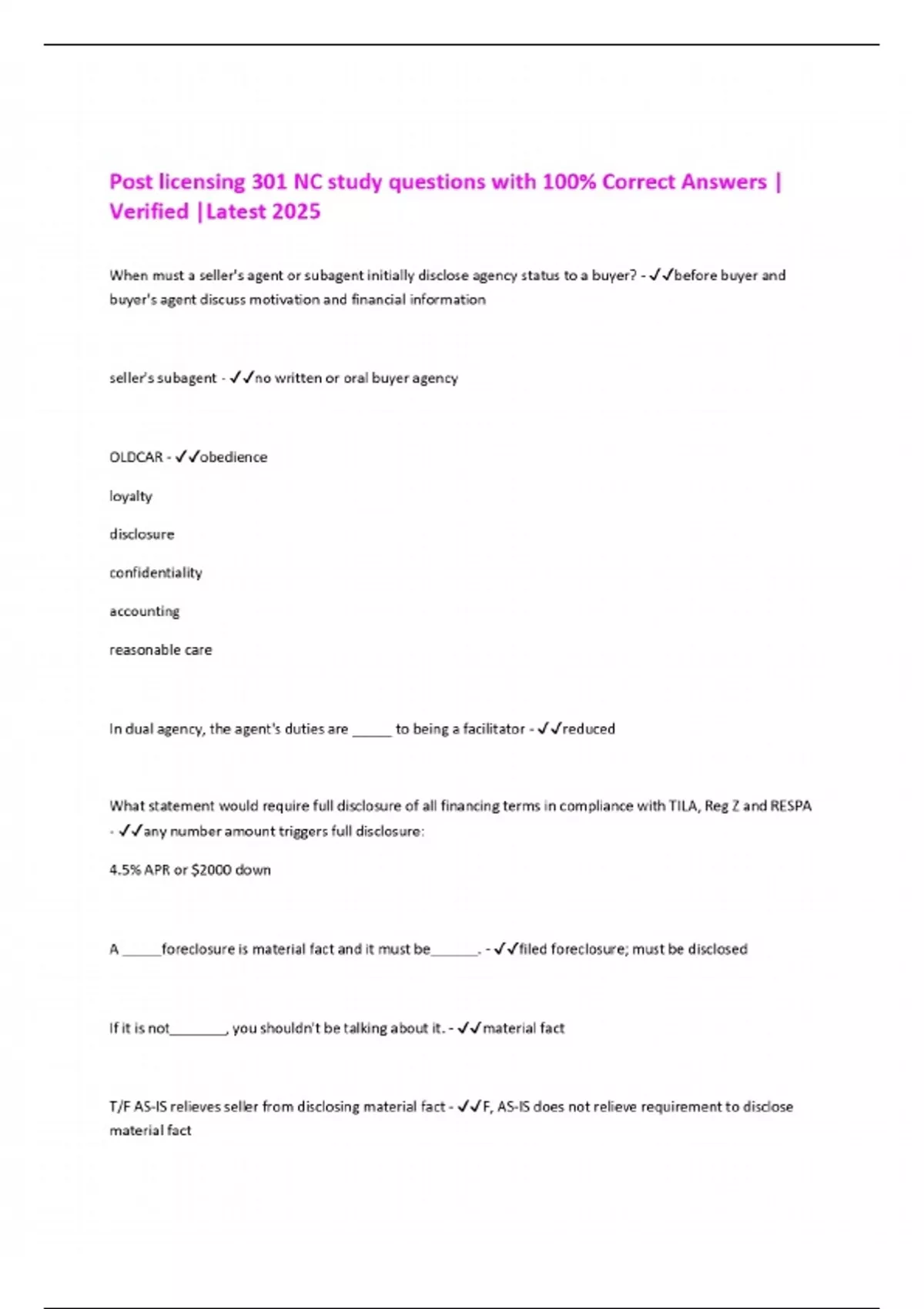 Post licensing 301 NC study questions with 100% Correct Answers | Verified |Latest 2025