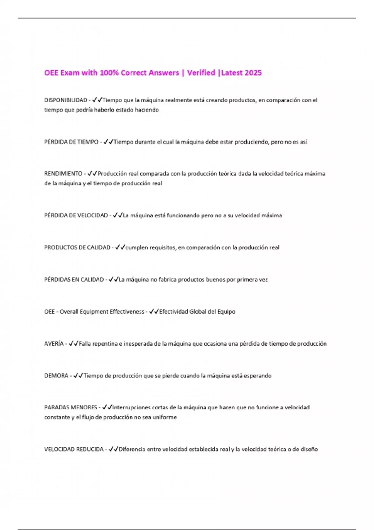 OEE Exam with 100% Correct Answers | Verified |Latest 2025