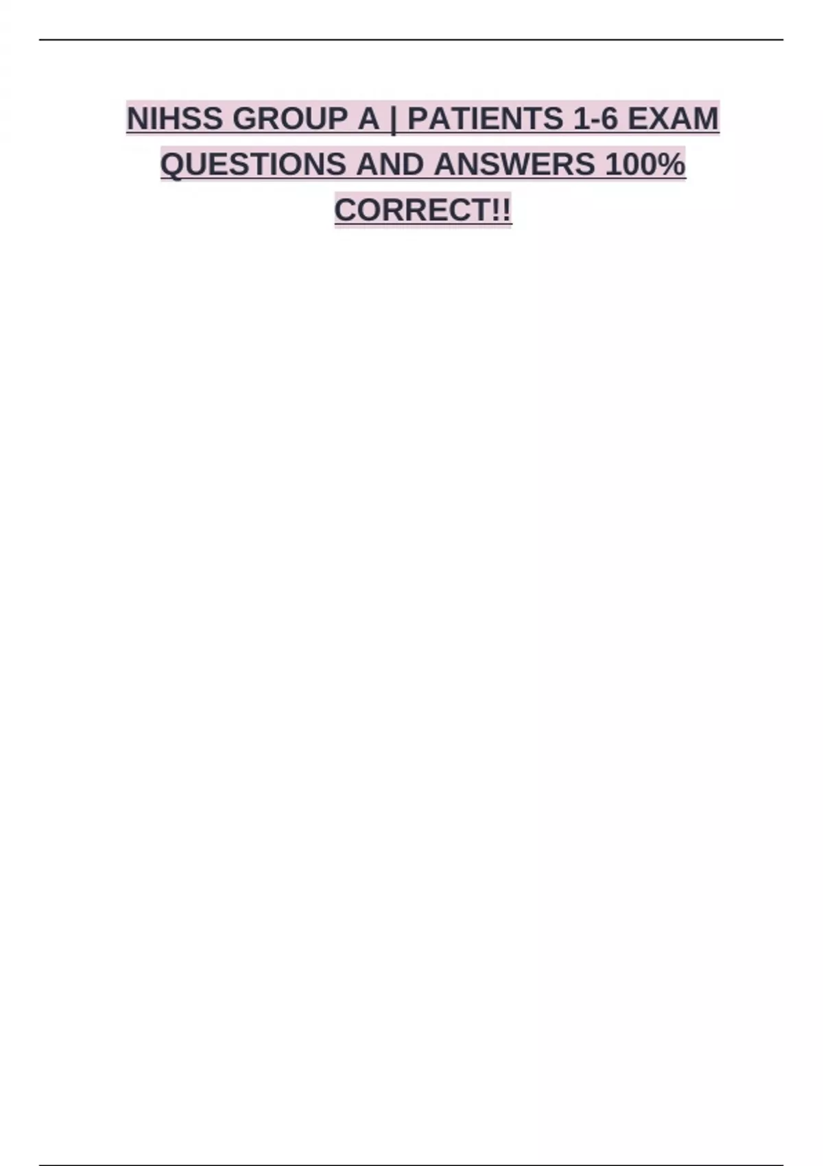 NIHSS GROUP A | PATIENTS 1-6 EXAM QUESTIONS AND ANSWERS 100% CORRECT!!