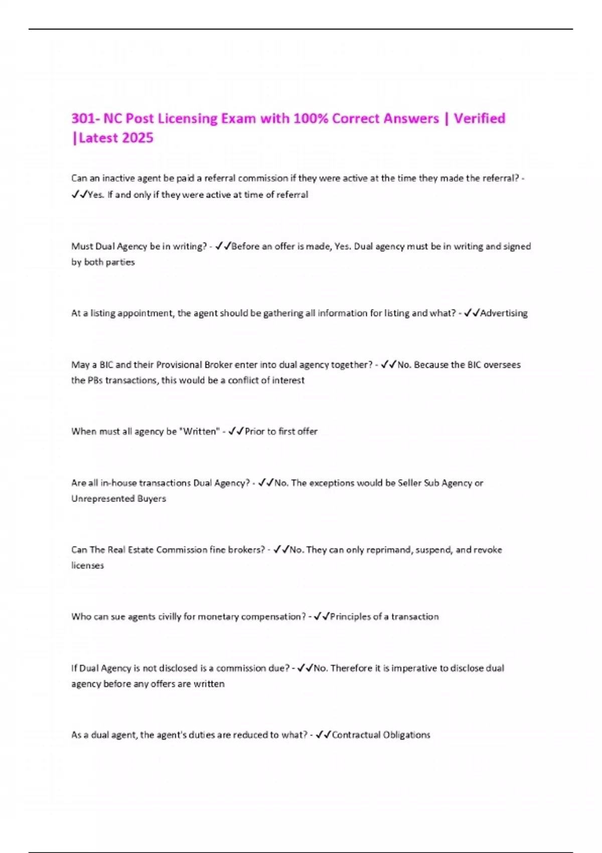 301- NC Post Licensing Exam with 100% Correct Answers | Verified |Latest 2025
