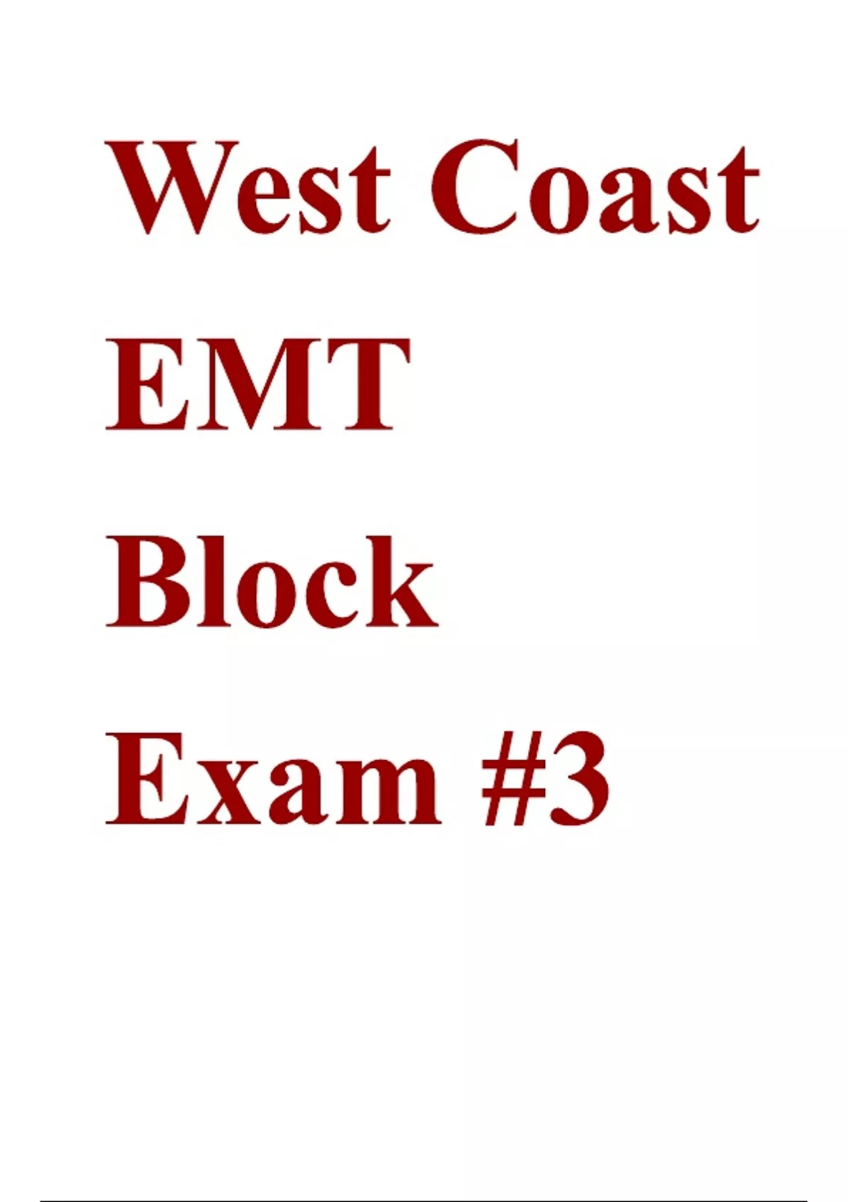 West Coast EMT Block Exam 3 Questions and Correct Answers (100% COMPLETE ANSWERS) ALREADY GRADED A+ | 100% satisfaction guarantee with complete solutions, all Answers Included (Latest update) 2025/2026!!!