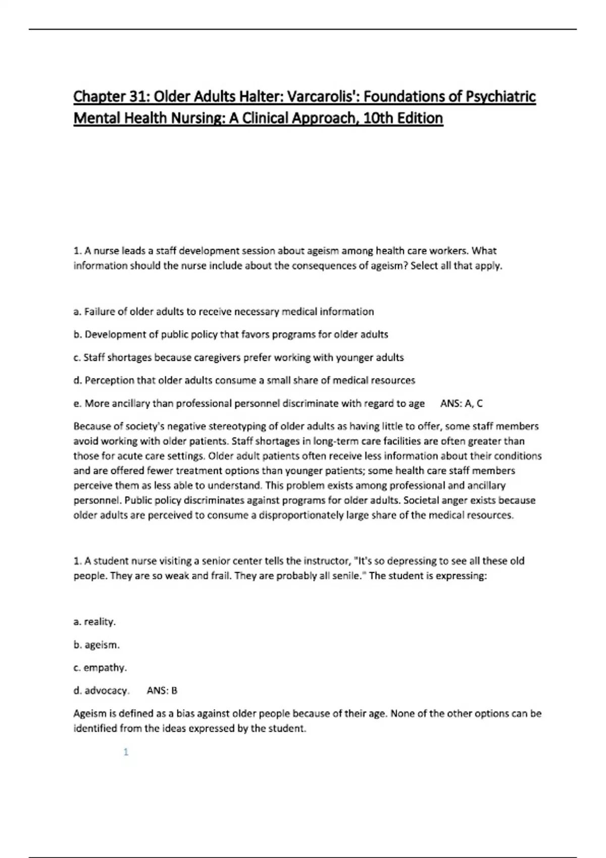 Chapter 31 Older Adults Halter Varcarolis- Foundations of Psychiatric Mental Health Nursing A Clinical Approach, 10th E