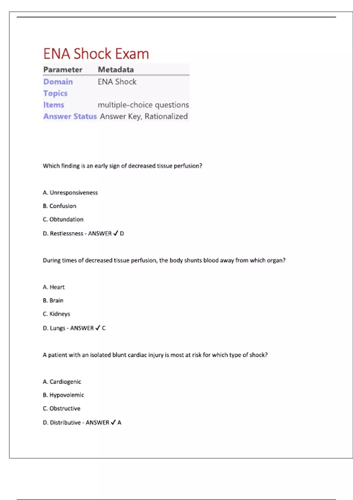 ENA Shock Exam Comprehensive questions and verified answers (100% correct) grade A+
