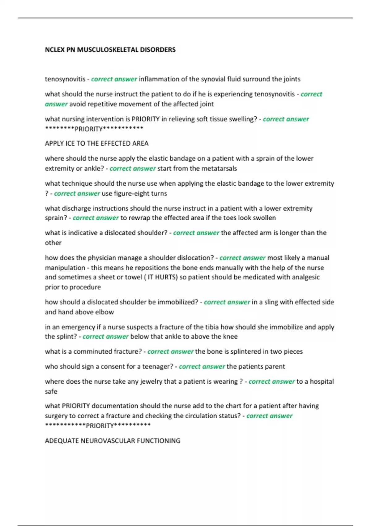 NCLEX PN MUSCULOSKELETAL DISORDERS
