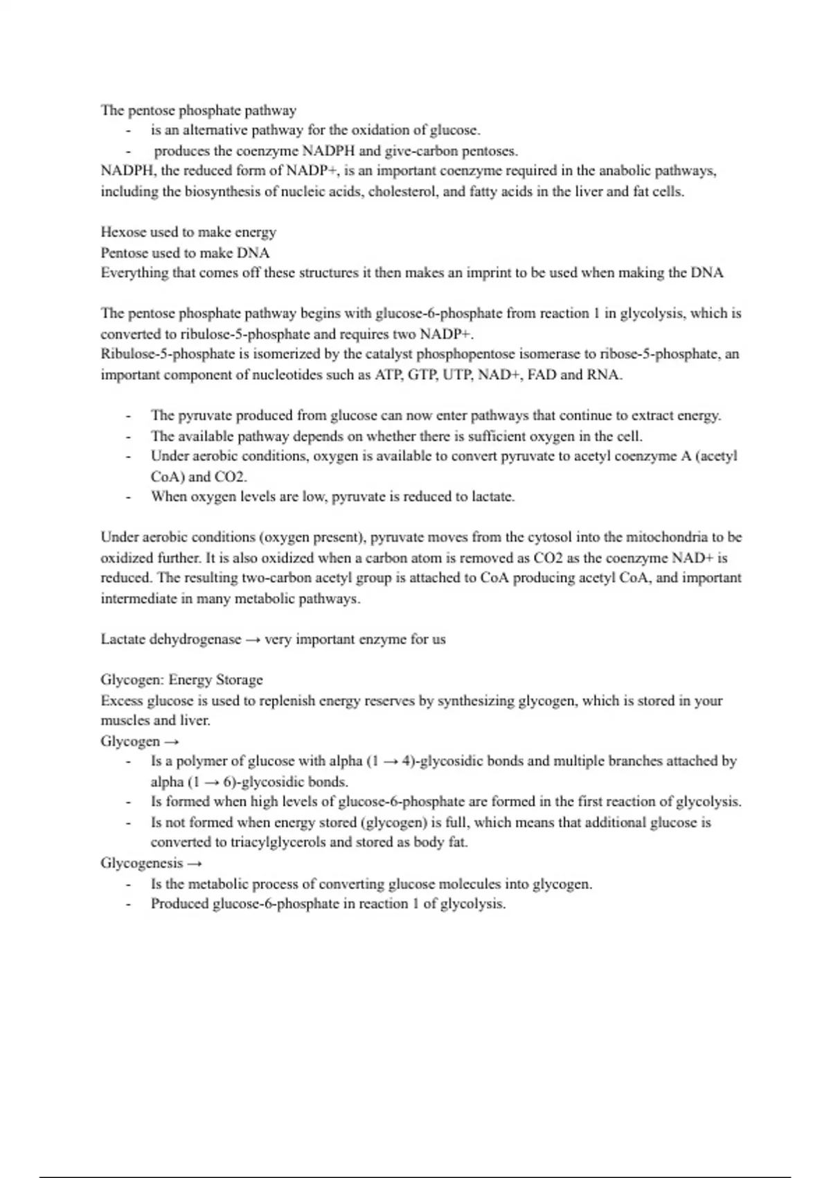 -​ Is not formed when energy stored (glycogen) is full, which means that additional glucose is