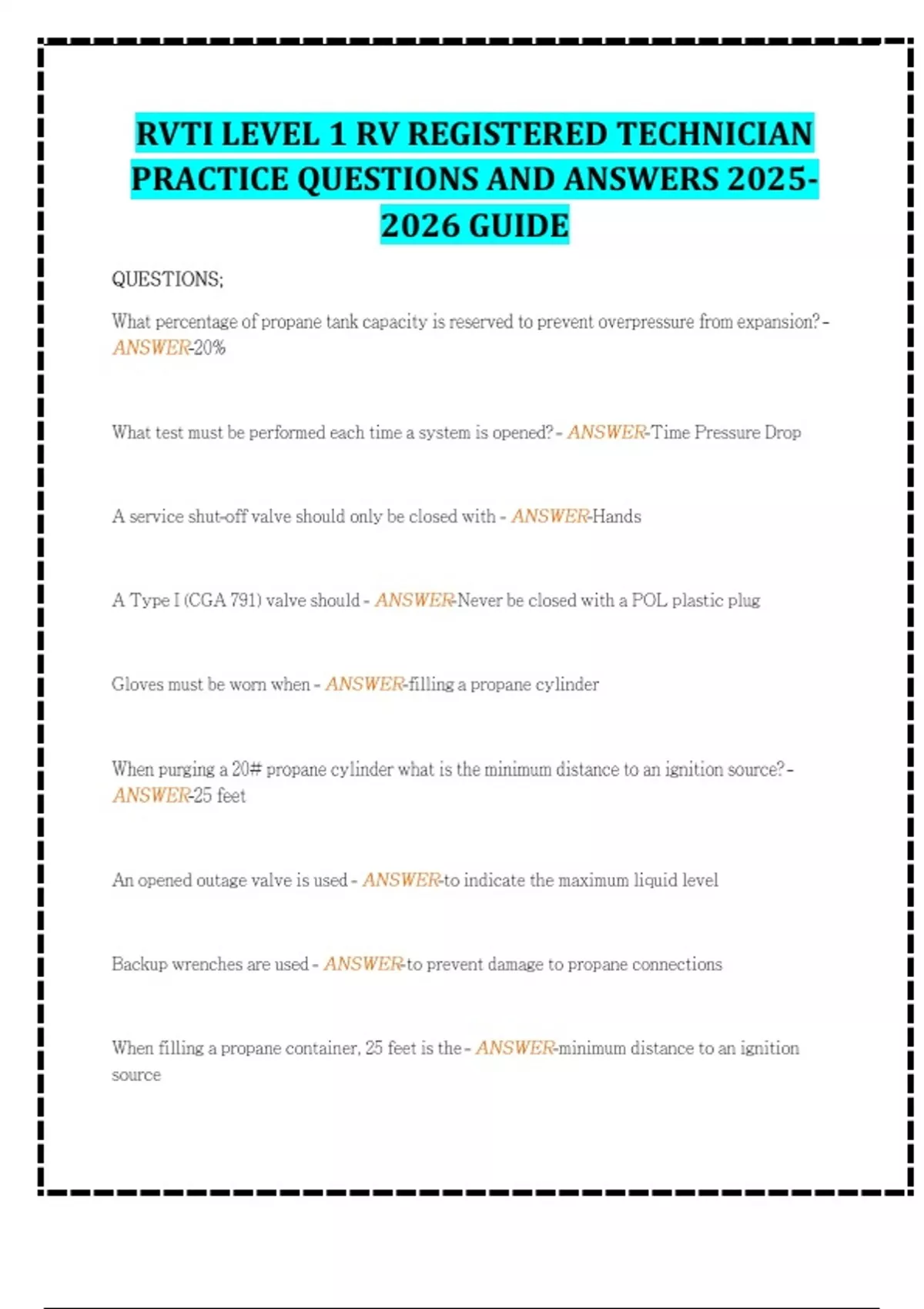 RVTI LEVEL 1 RV REGISTERED TECHNICIAN PRACTICE QUESTIONS AND ANSWERS GUIDE