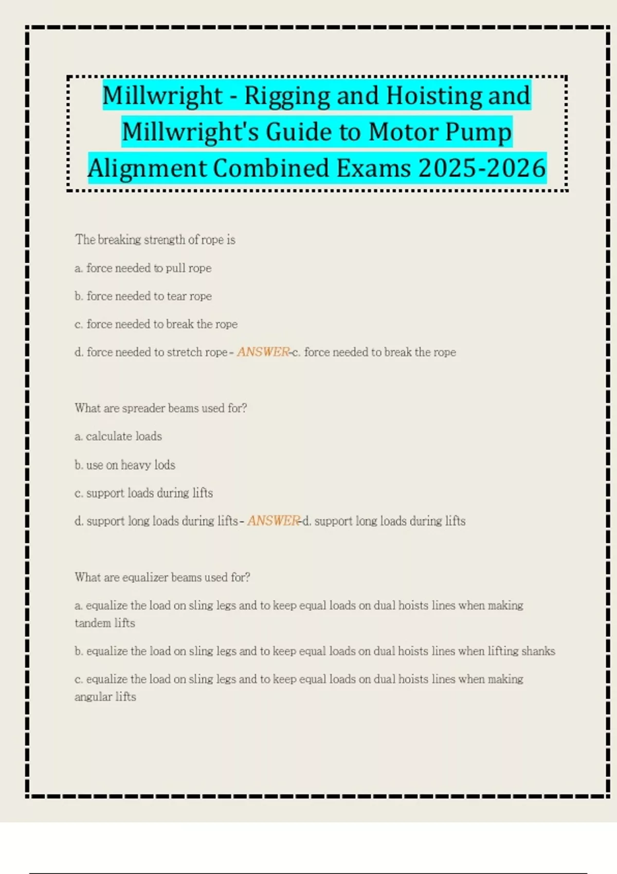 Millwright - Rigging and Hoisting and Millwright's Guide to Motor Pump Alignment Combined Exams