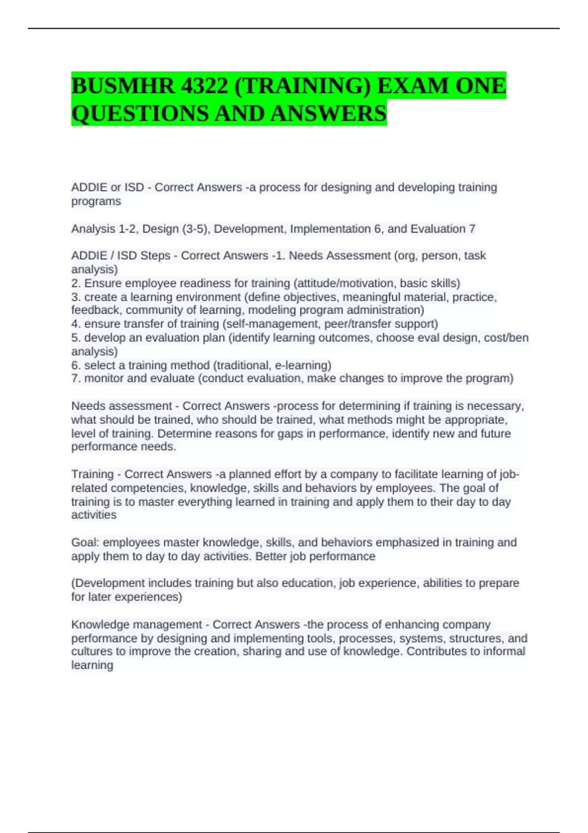 BUSMHR 4322 (TRAINING) EXAM ONE