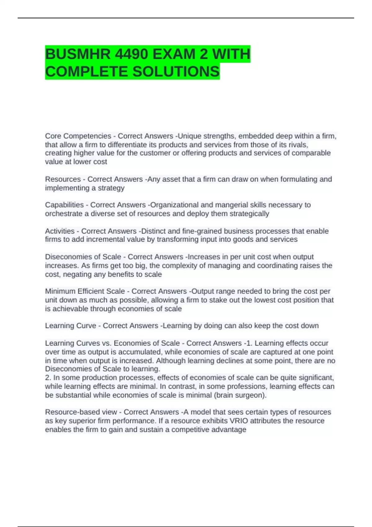 BUSMHR 4490 EXAM 2 WITH