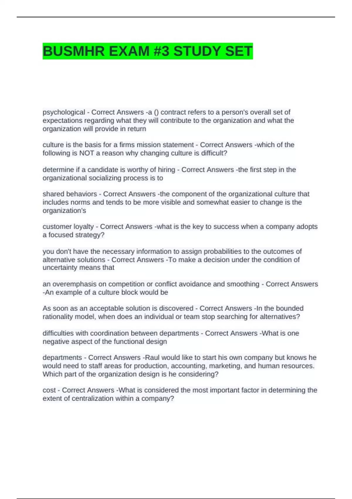 BUSMHR EXAM #3 STUDY SET WITH COMPLETE SOLUTIONS