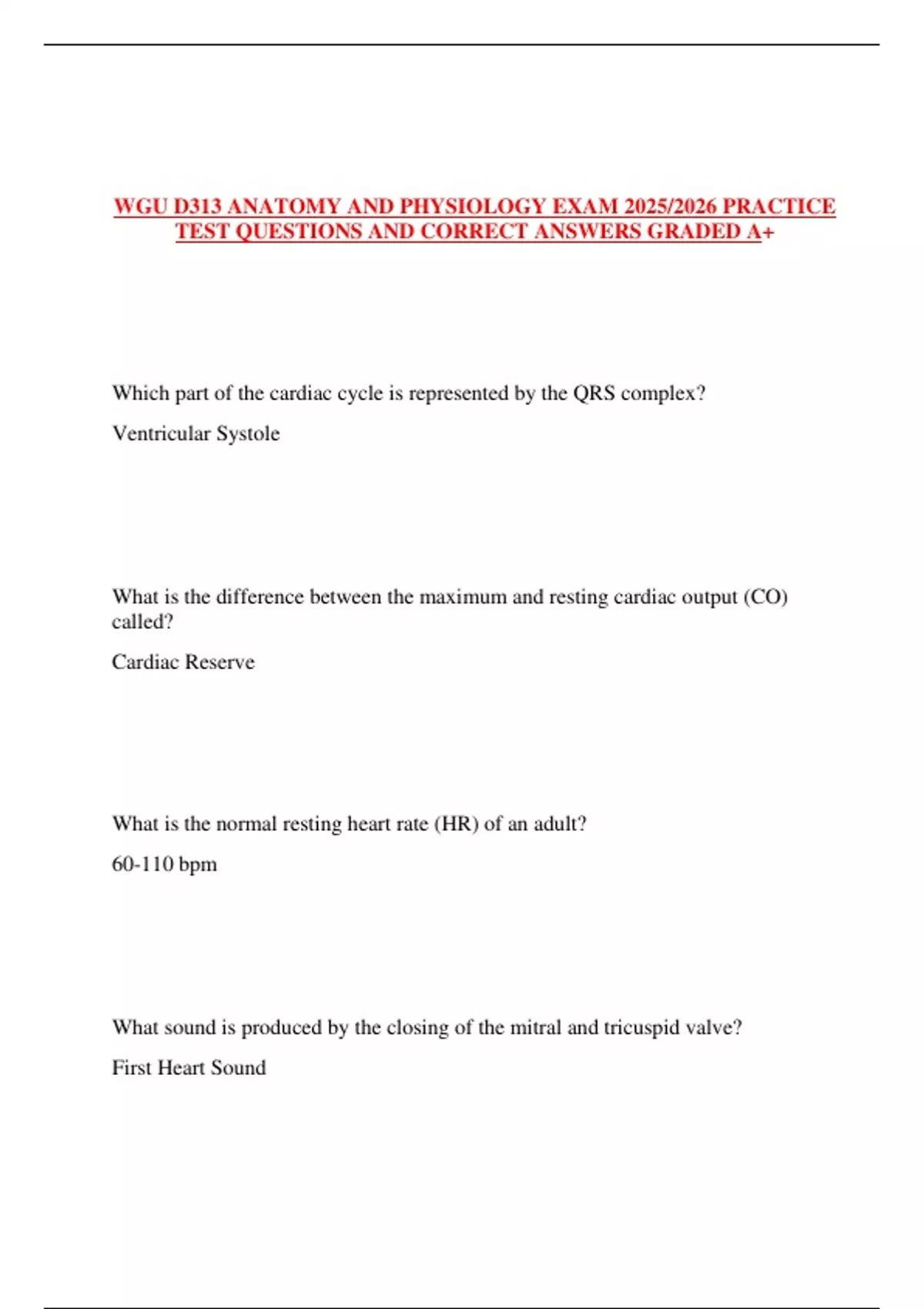 WGU D313 ANATOMY AND PHYSIOLOGY EXAM 2025/2026 PRACTICE TEST QUESTIONS AND CORRECT ANSWERS GRADED A+