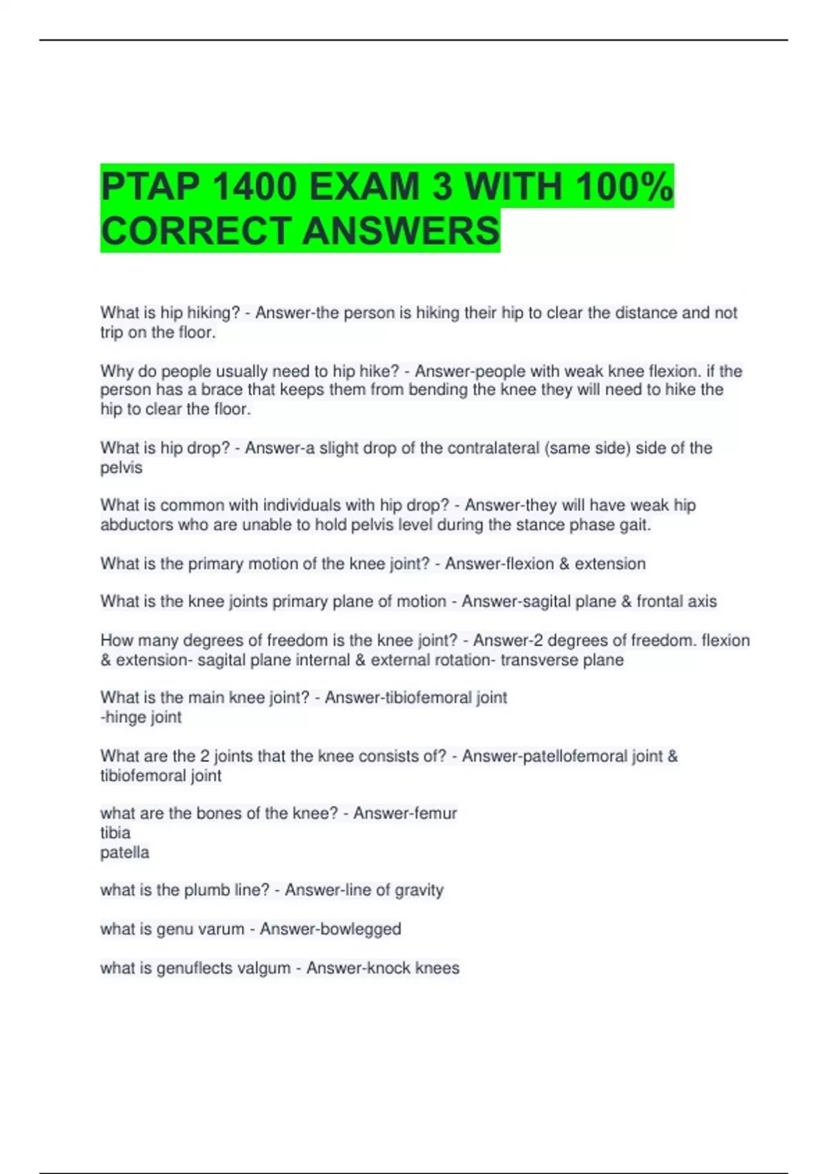 What is the knee joints primary plane of motion - Answer-sagital plane & frontal axis
