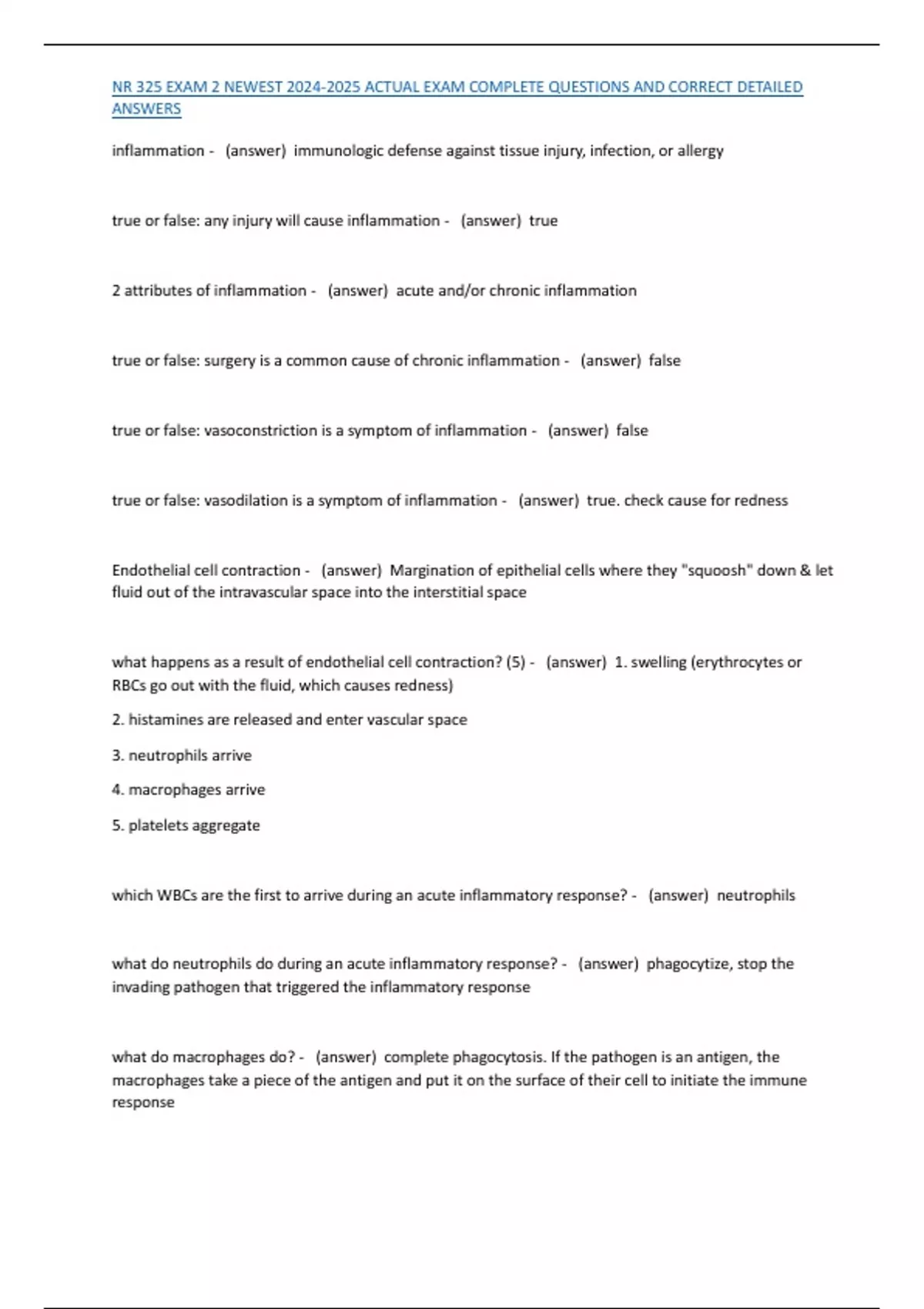 , NR 325 EXAM 2 NEWEST 2024-2025 ACTUAL EXAM COMPLETE QUESTIONS AND CORRECT DETAILED