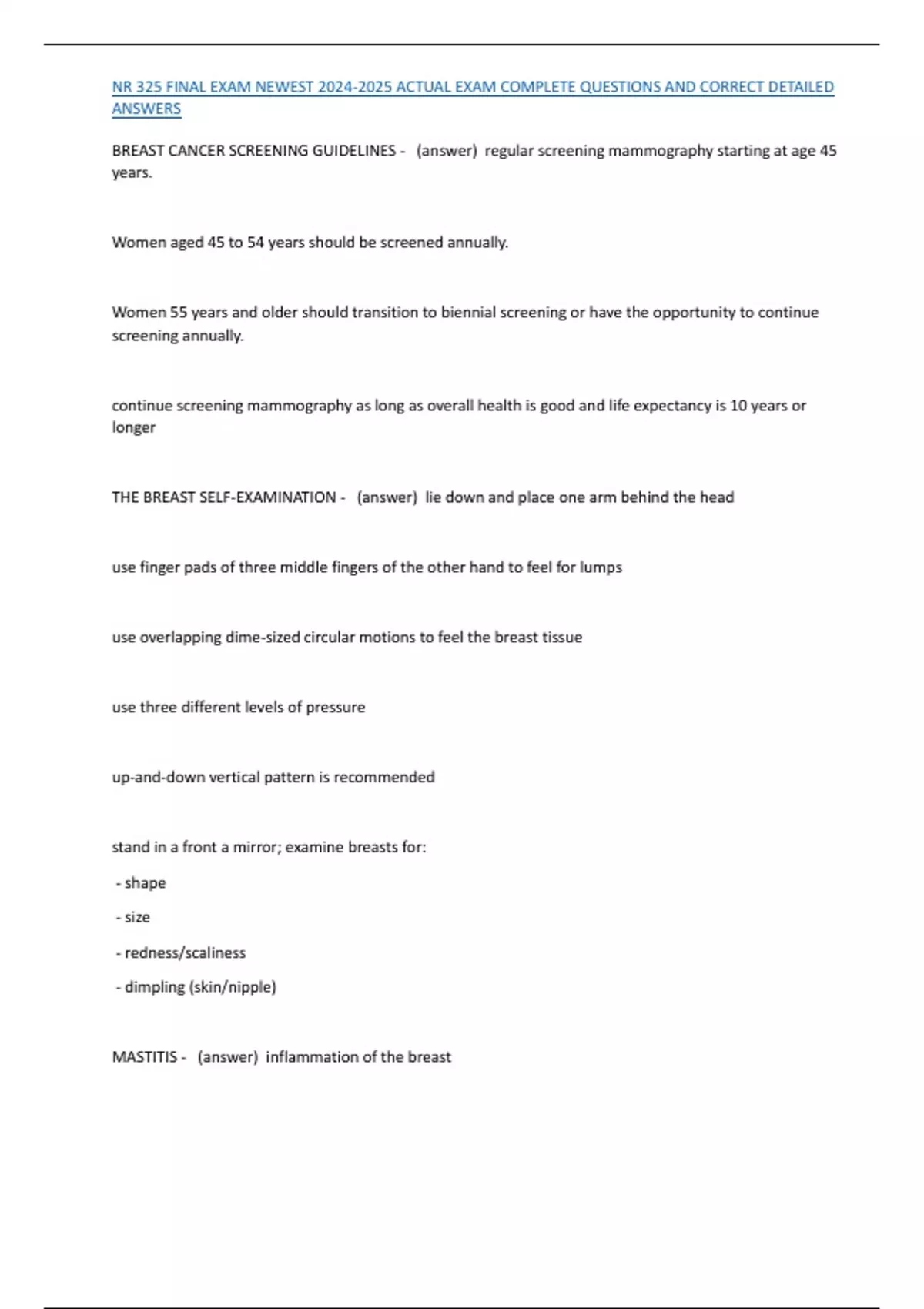 BREAST CANCER SCREENING GUIDELINES - (answer) regular screening mammography starting at age 45