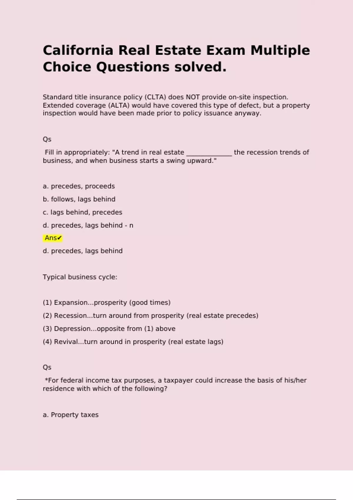 (4) Revival...turn around in prosperity (real estate lags)