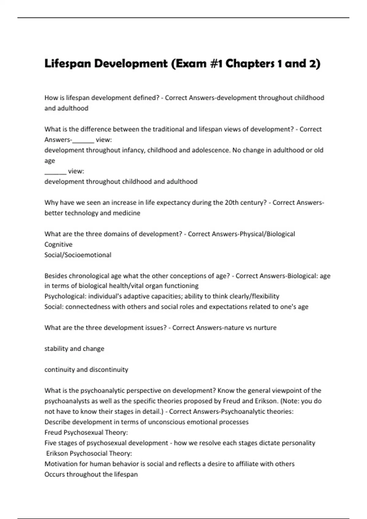 not have to know their stages in detail.) - Correct Answers-Psychoanalytic theories:
