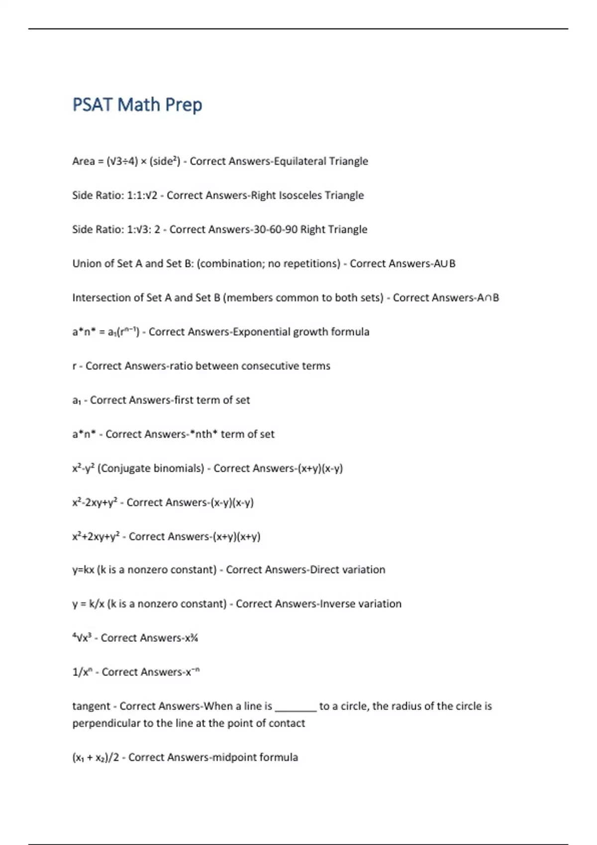 PSAT Math Prep