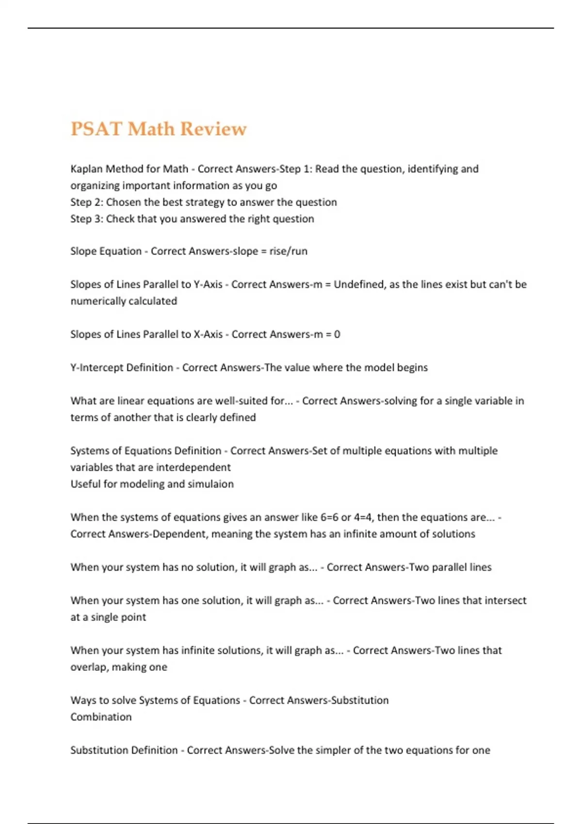 Kaplan Method for Math - Correct Answers-Step 1: Read the question, identifying and