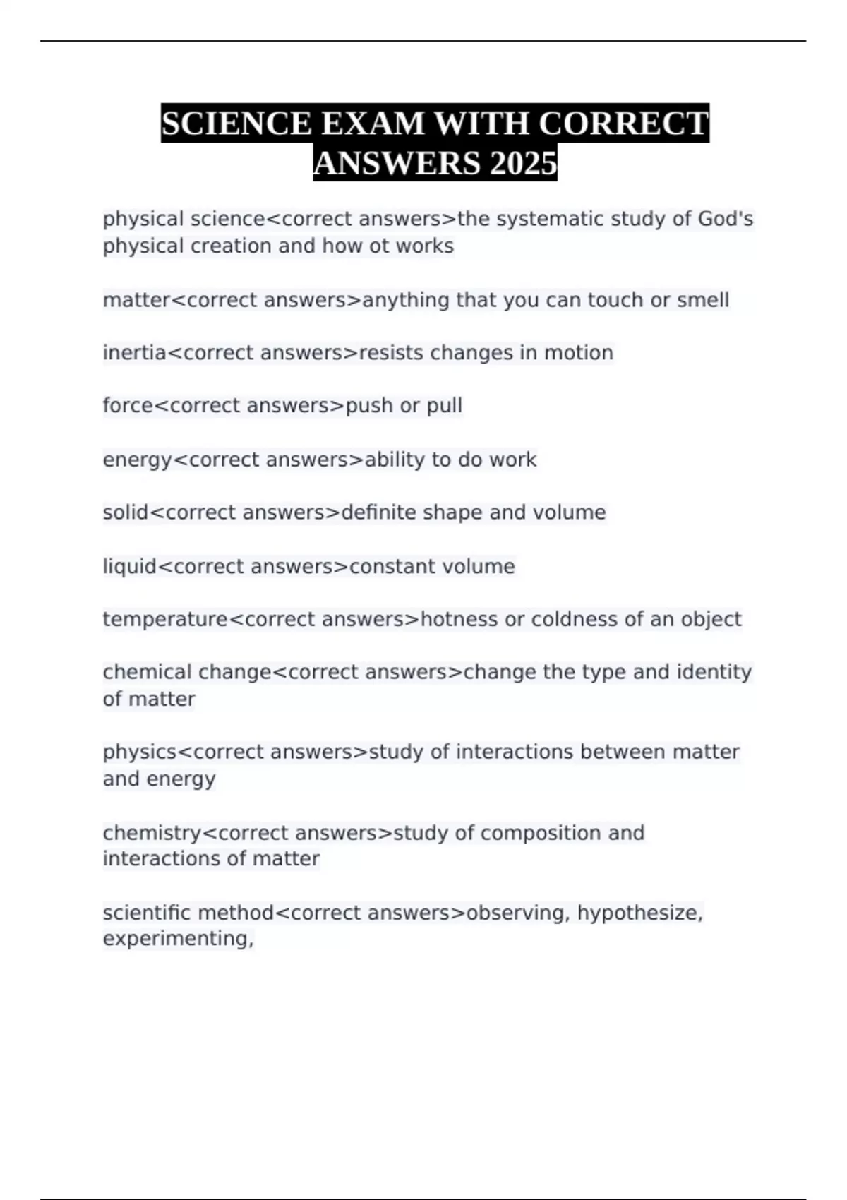 SCIENCE EXAM WITH CORRECT