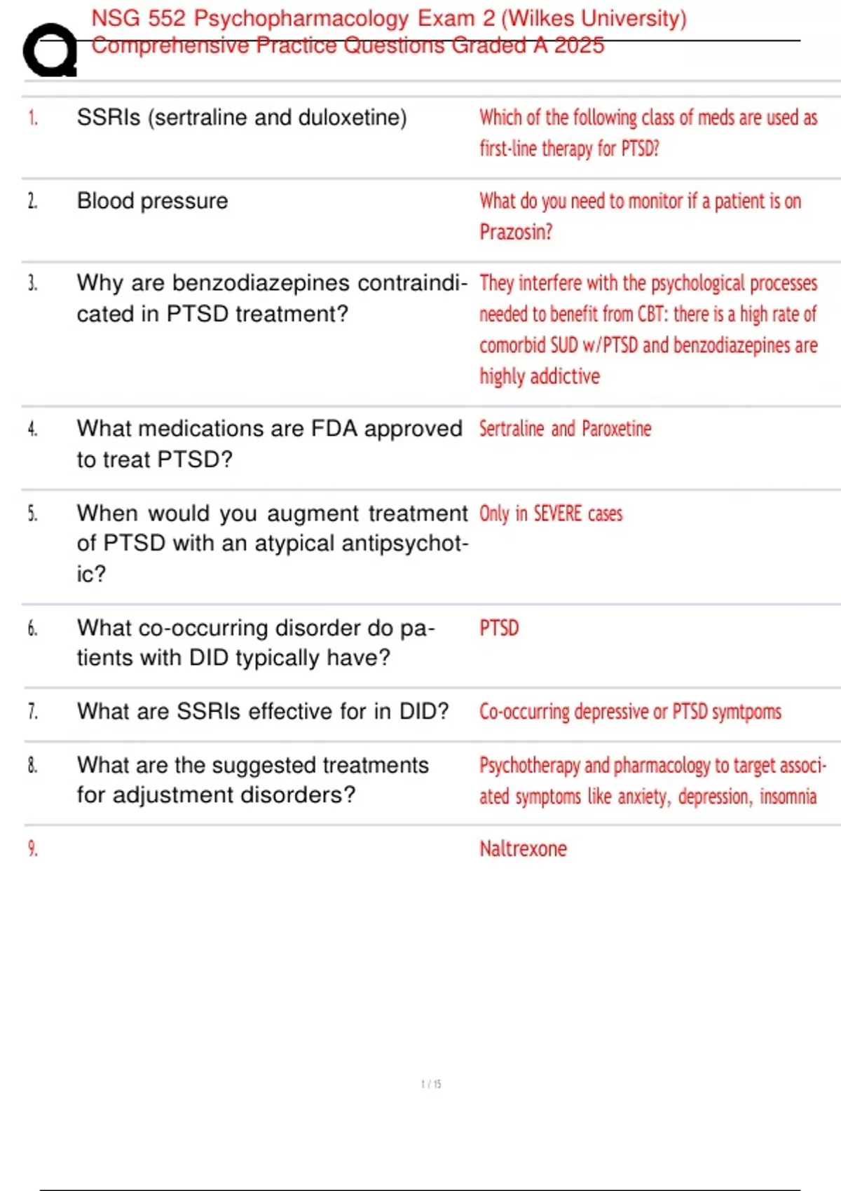 , NSG 552 Psychopharmacology Exam 2 (Wilkes University)