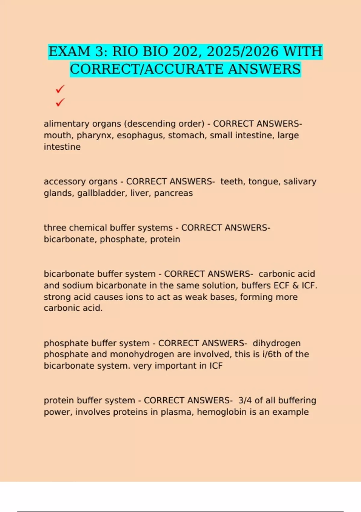 EXAM 3: RIO BIO 202, 2025/2026 WITH CORRECT/ACCURATE ANSWERS