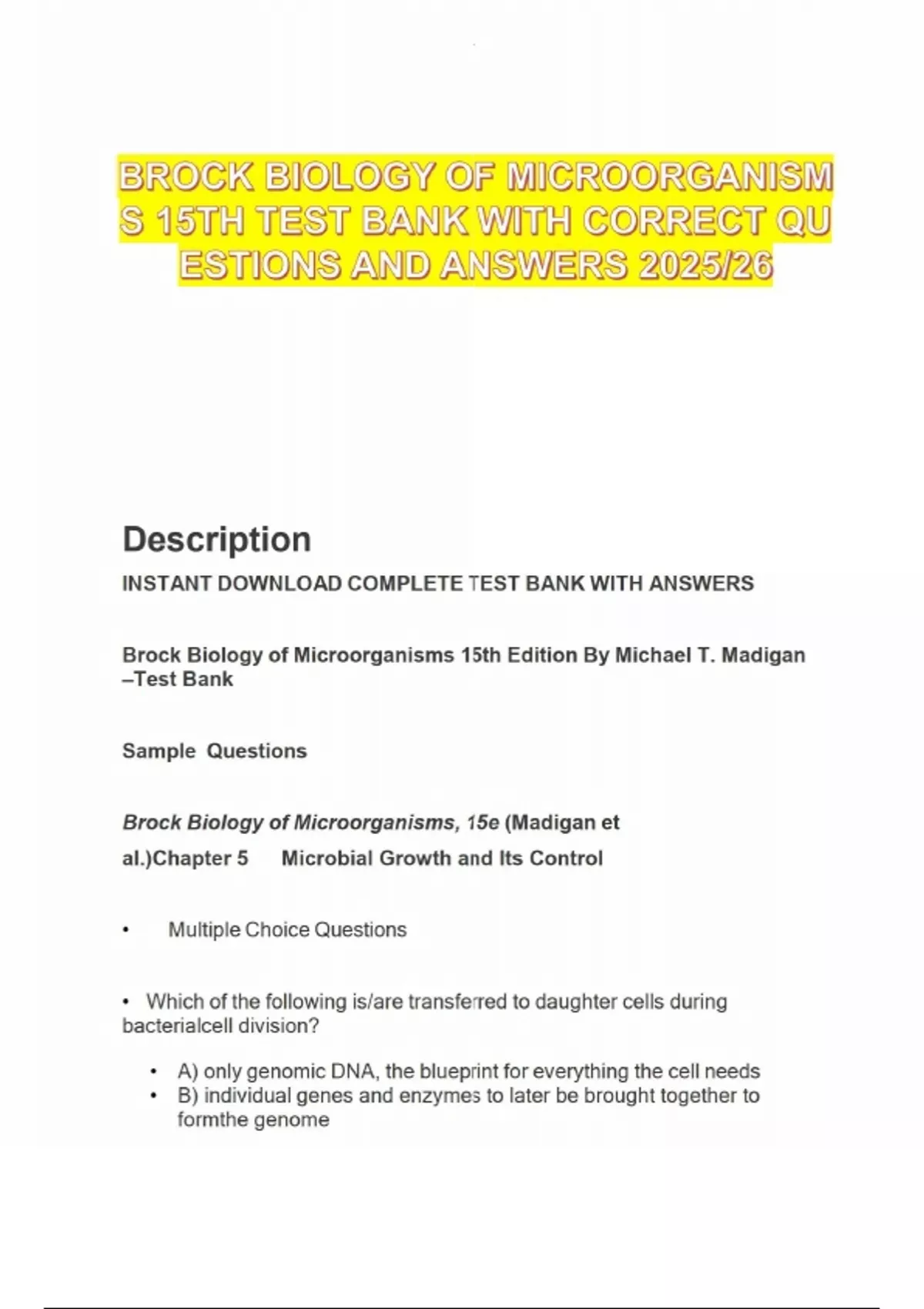 BROCK BIOLOGY OF MICROORGANISMS 15TH TEST BANK WITH CORRECT QUESTIONS AND ANSWERS 2025/26BROCK BIOLOGY OF MICROORGANISMS 15TH TEST BANK WITH CORRECT QUESTIONS AND ANSWERS 2025/26BROCK BIOLOGY OF MICROORGANISMS 15TH TEST BANK WITH CORRECT QUESTIONS AND ANSWERS 2025/26BROCK BIOLOGY OF MICROORGANISMS 15TH TEST BANK WITH CORRECT QUESTIONS AND ANSWERS 2025/26BROCK BIOLOGY OF MICROORGANISMS 15TH TEST BANK WITH CORRECT QUESTIONS AND ANSWERS 2025/26