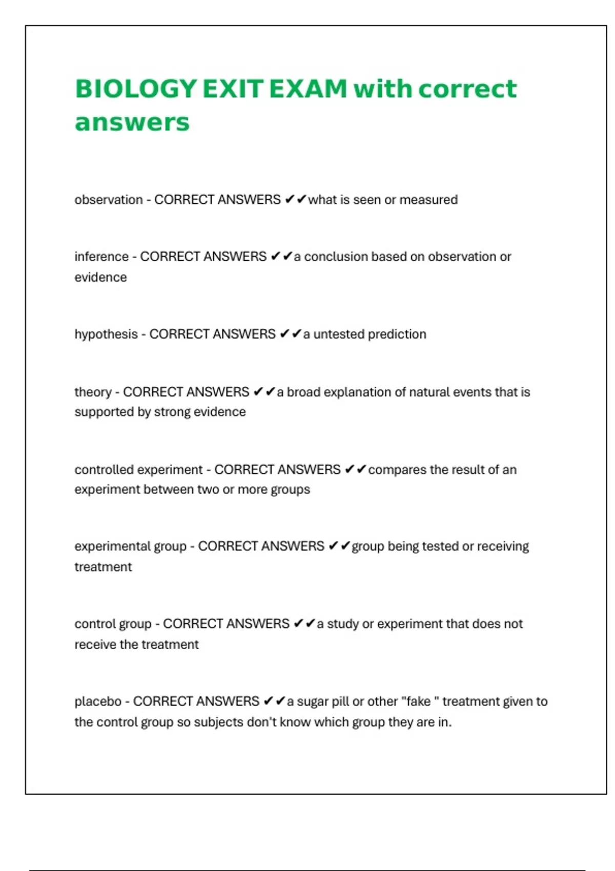 BIOLOGY EXIT EXAM with correct answers