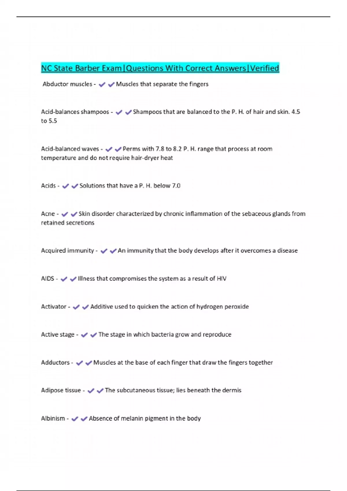 NC State Barber Exam|Questions With Correct Answers|Verified