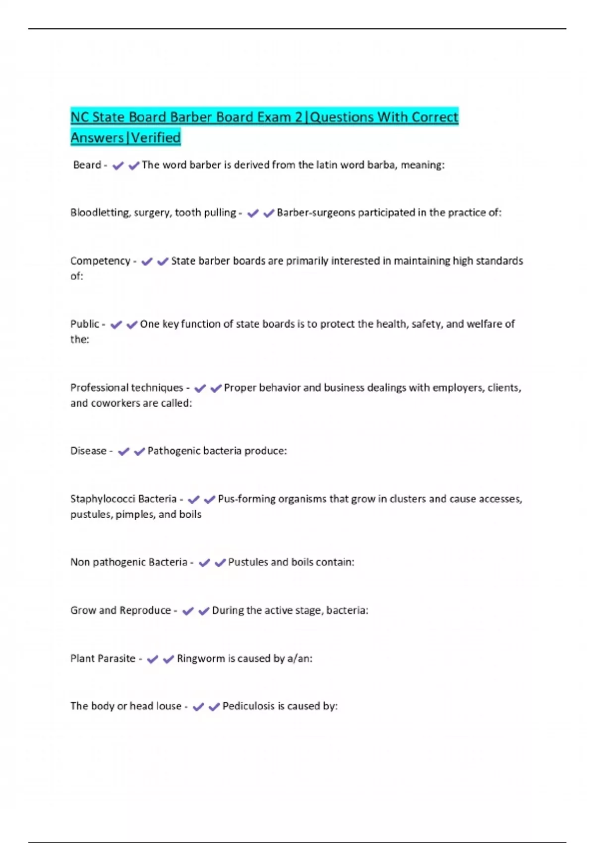 NC State Board Barber Board Exam 2|Questions With Correct Answers|Verified