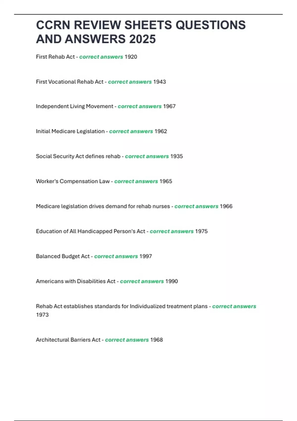 Medicare legislation drives demand for rehab nurses - correct answers 1966