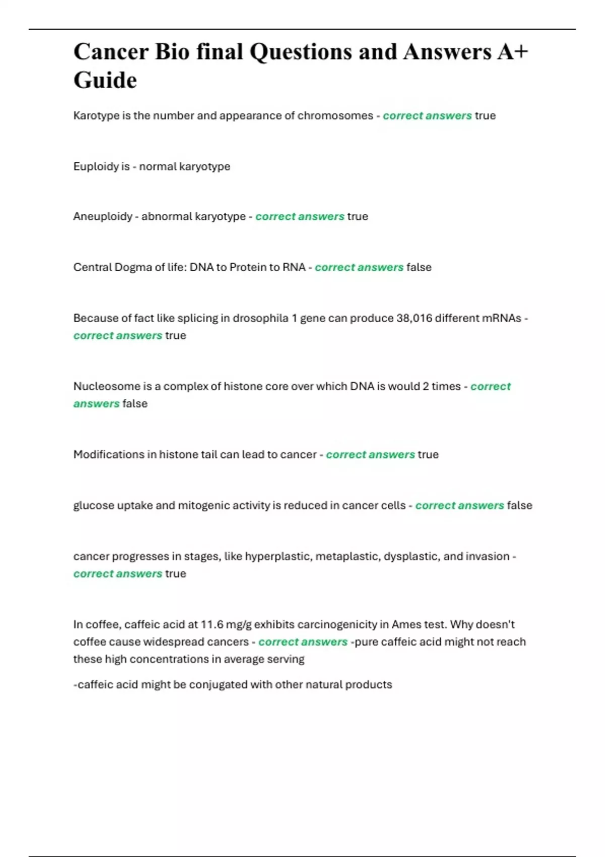 Cancer Bio final Questions and Answers A+