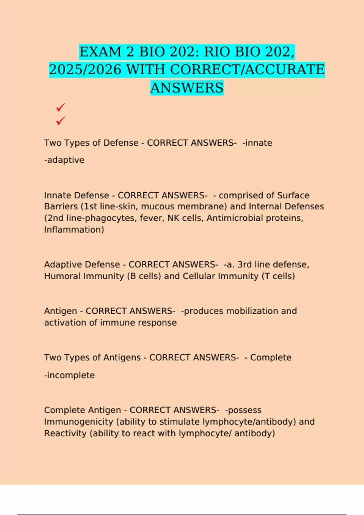 EXAM 2 BIO 202: RIO BIO 202, 2025/2026 WITH CORRECT/ACCURATE ANSWERS