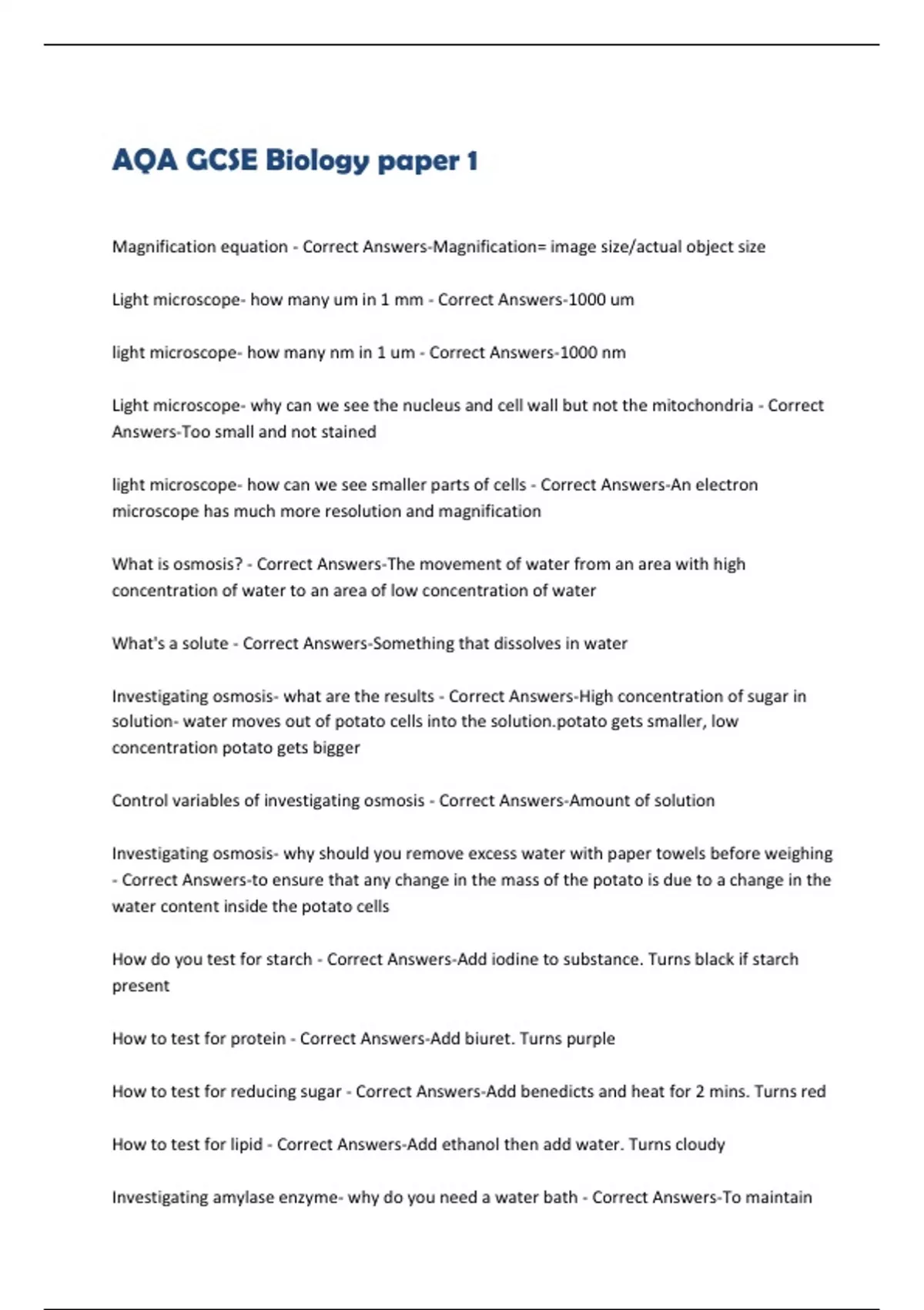 - Correct Answers-to ensure that any change in the mass of the potato is due to a change in the