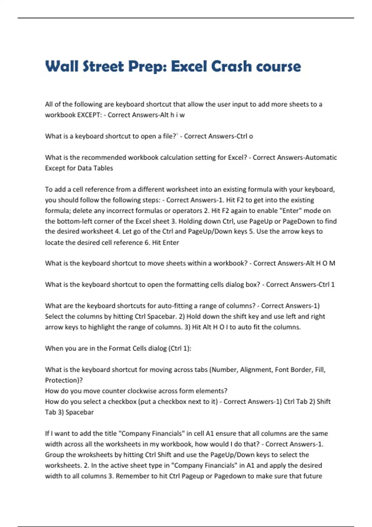width across all the worksheets in my workbook, how would I do that? - Correct Answers-1.