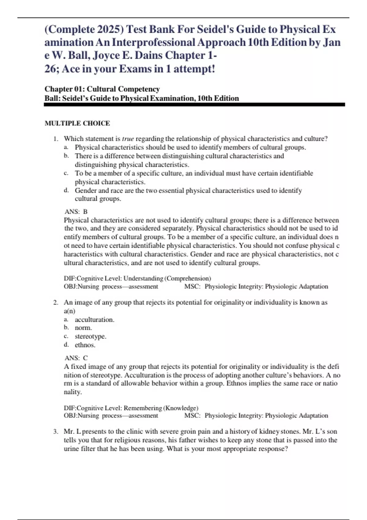 ,(Complete 2025) Test Bank For Seidel's Guide to Physical Ex