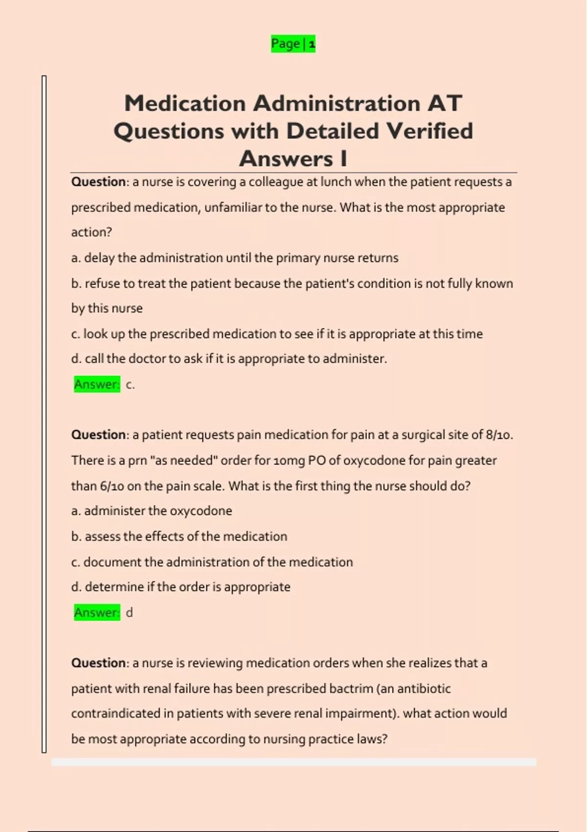 Question: a nurse is reviewing medication orders when she realizes that a