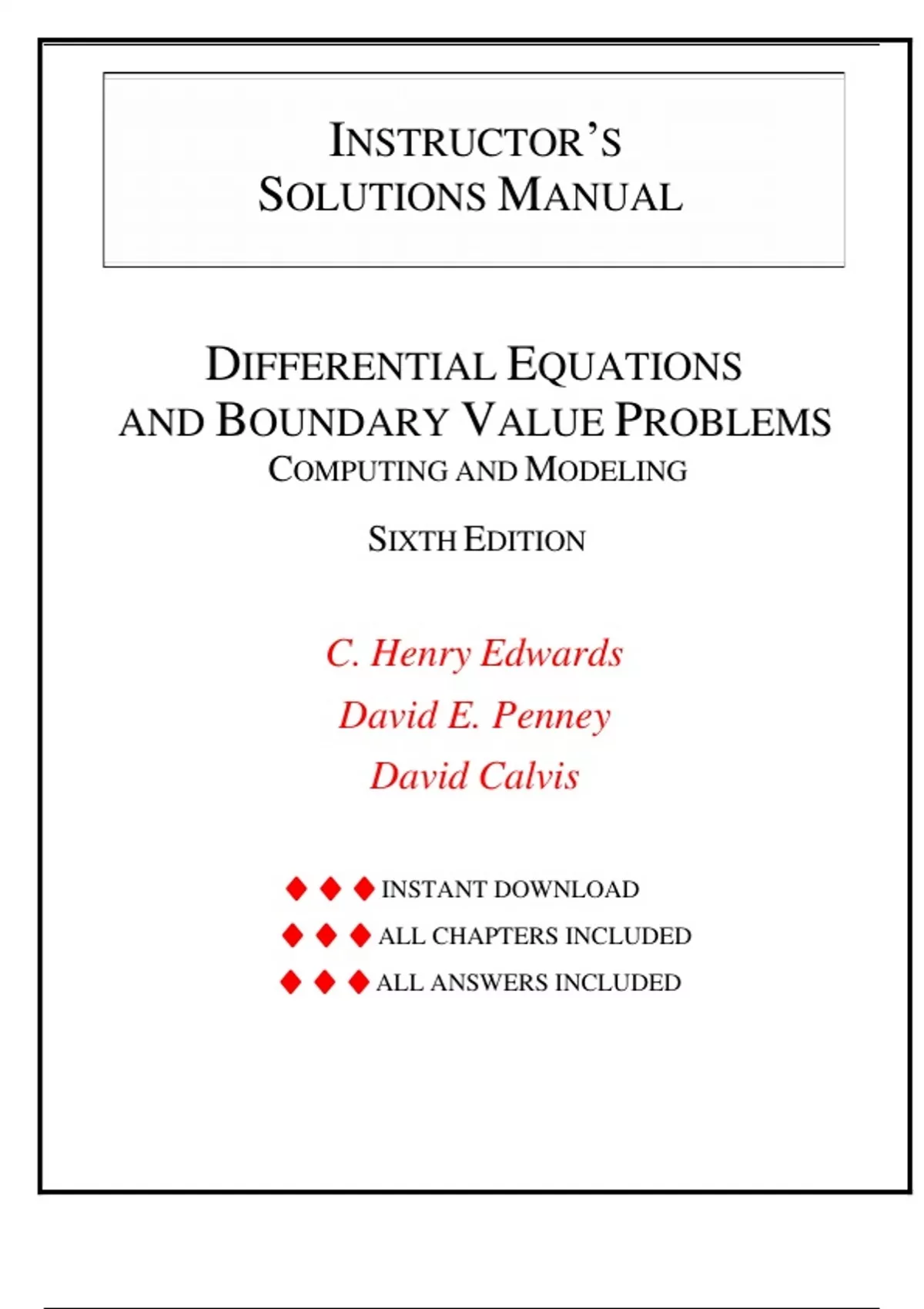 Instructor's Solution Manual for Differential Equations and Boundary Value Problems: Computing and Modeling 6th Edition by Charles Henry Edwards